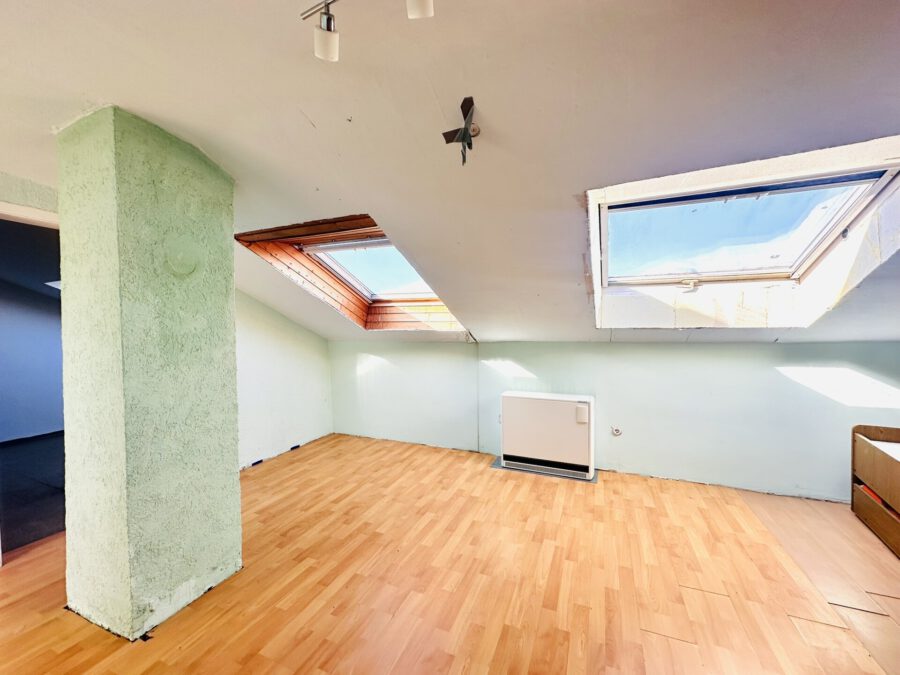 Neben den beiden abgeschlossenen Wohneinheiten verfügt das Haus über ein bereits ausgebautes Dachgeschoss (ca. 45m²). Dieses ist aktuell nicht als Wohnfläche genehmigt, eröffnet Ihnen jedoch attraktive Gestaltungsmöglichkeiten.