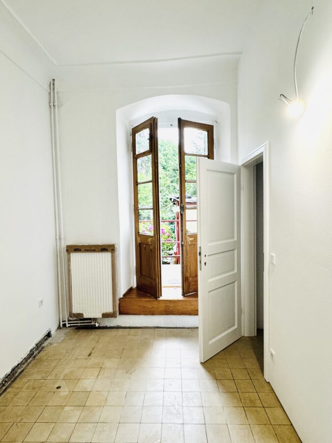 Sie wurde wurde frisch renoviert und in weiß gestrichen. Es wird noch eine neue Pantryküche eingebaut (ohne Kühlschrank). Von der Küche aus gelangen Sie auf den kleinen Freisitz zum Hinterhof. Ebenfalls von der Küche gelangen Sie ins Tageslicht Bad mit Dusche und WC.