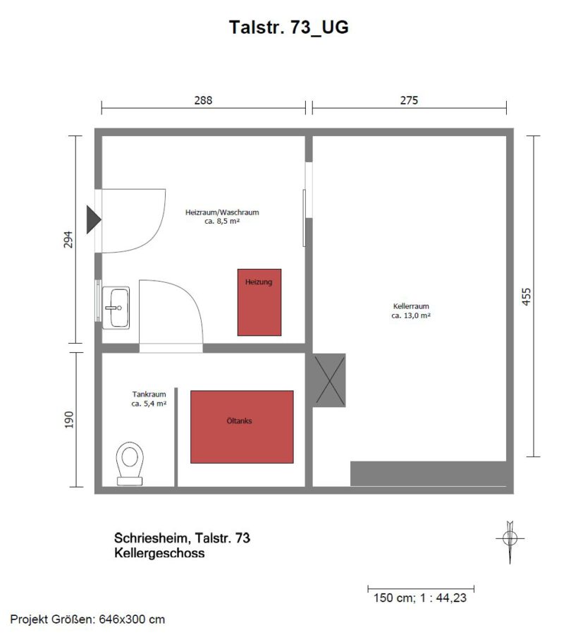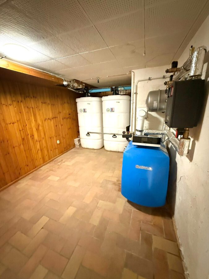 Der von außen zugängliche Keller bietet zusätzlichen Stauraum sowie Platz für kreative Ideen. Hier befinden sich der Wasch- und Trockenraum mit Anschluss für die Waschmaschine, ein großer Hobbyraum, eine separate Toilette, sowie der Heizraum.